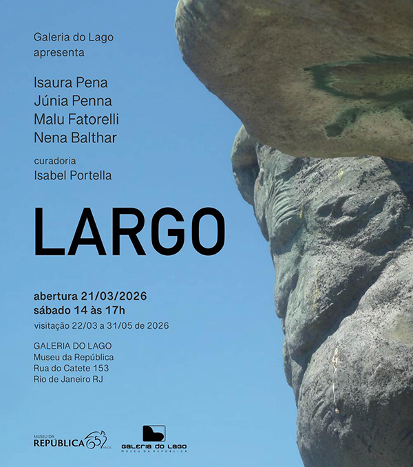 LARGO. Obras das artistas Isaura Pena, Júnia Penna, Malu Fatorelli e Nena Balthar. Curadoria: Isabel Portella. Galeria do Lago, no jardim do museu, de quarta a domingo, 11 às 17h.