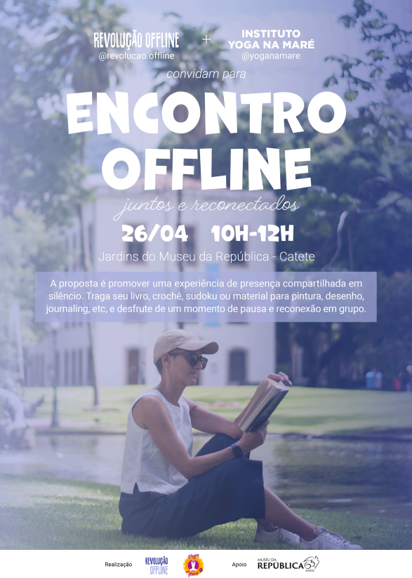 26/4 | 10 às 12h | Yoga na Maré. A proposta é promover um encontro aberto de leitura ao ar livre, com duração aproximada de 2 horas, convidando pessoas a compartilharem um momento de pausa e concentração, em celebração ao Dia do Livro. A ideia é incentivar a leitura, o desacelerar e a desconexão do uso de dispositivos eletrônicos, criando um espaço de presença e contato com práticas offline, como ler, escrever, desenhar e bordar.