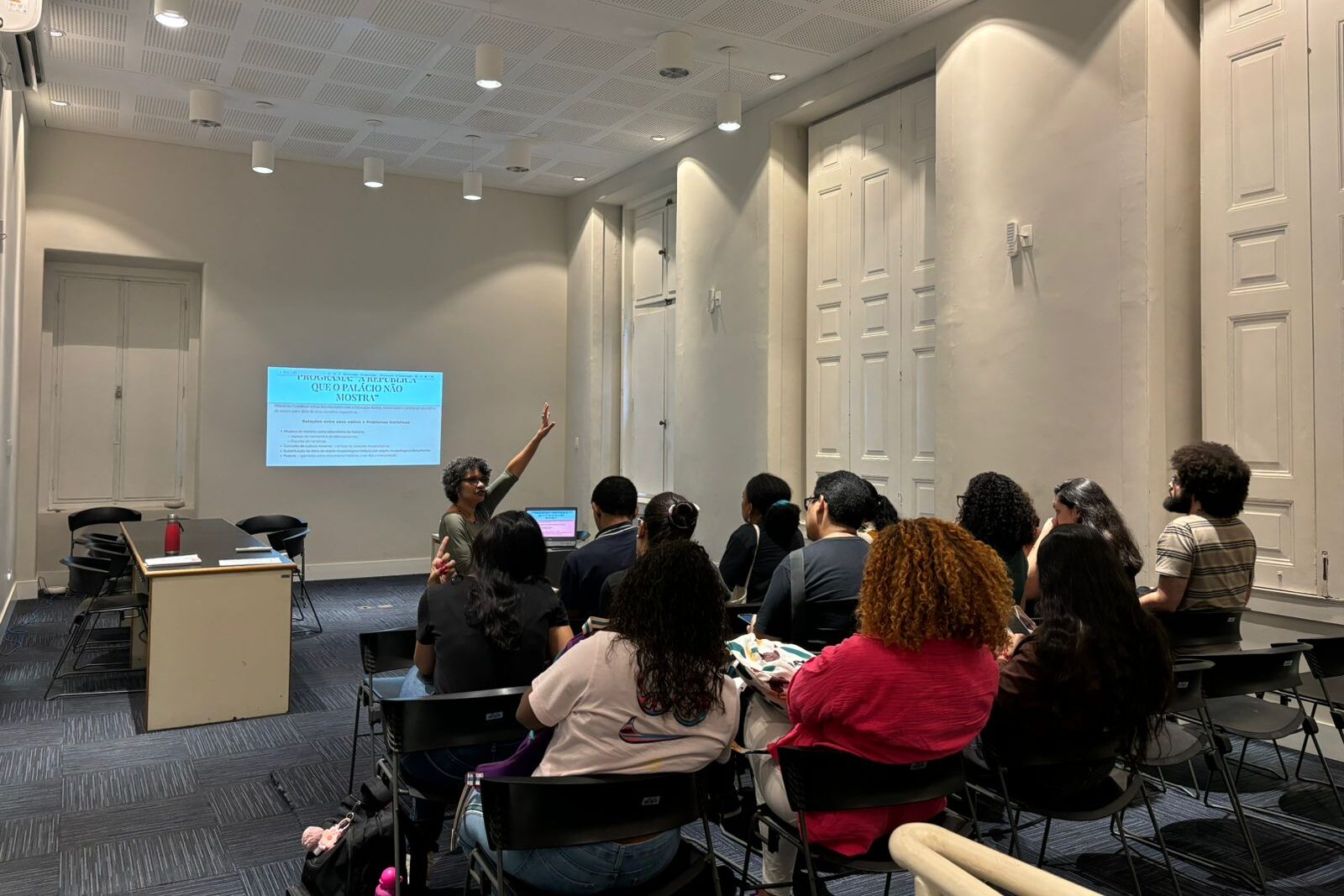 A República que o Palácio não mostra: Partindo da noção de museus como espaços de memórias e saberes em disputa, o programa se estrutura a partir de roteiros temáticos, que partem da materialidade do Palácio que, tal como um documento histórico, pode ser lido e interpretado. Tem como objetivo convidar o público a discutir problemas históricos brasileiros, através da desnaturalização das representações construídas pela Memória Oficial. Ao percorrer os salões do Palácio do Catete, o público é instigado a refletir não apenas sobre a visualidade do seu acabamento e mobília, mas principalmente sobre as questões e sujeitos que deveriam estar representados, mas não estão. Além das visitas, fazem parte do programa oficinas de formação para professores e alunos de graduação e projetos de formação de mediadores.