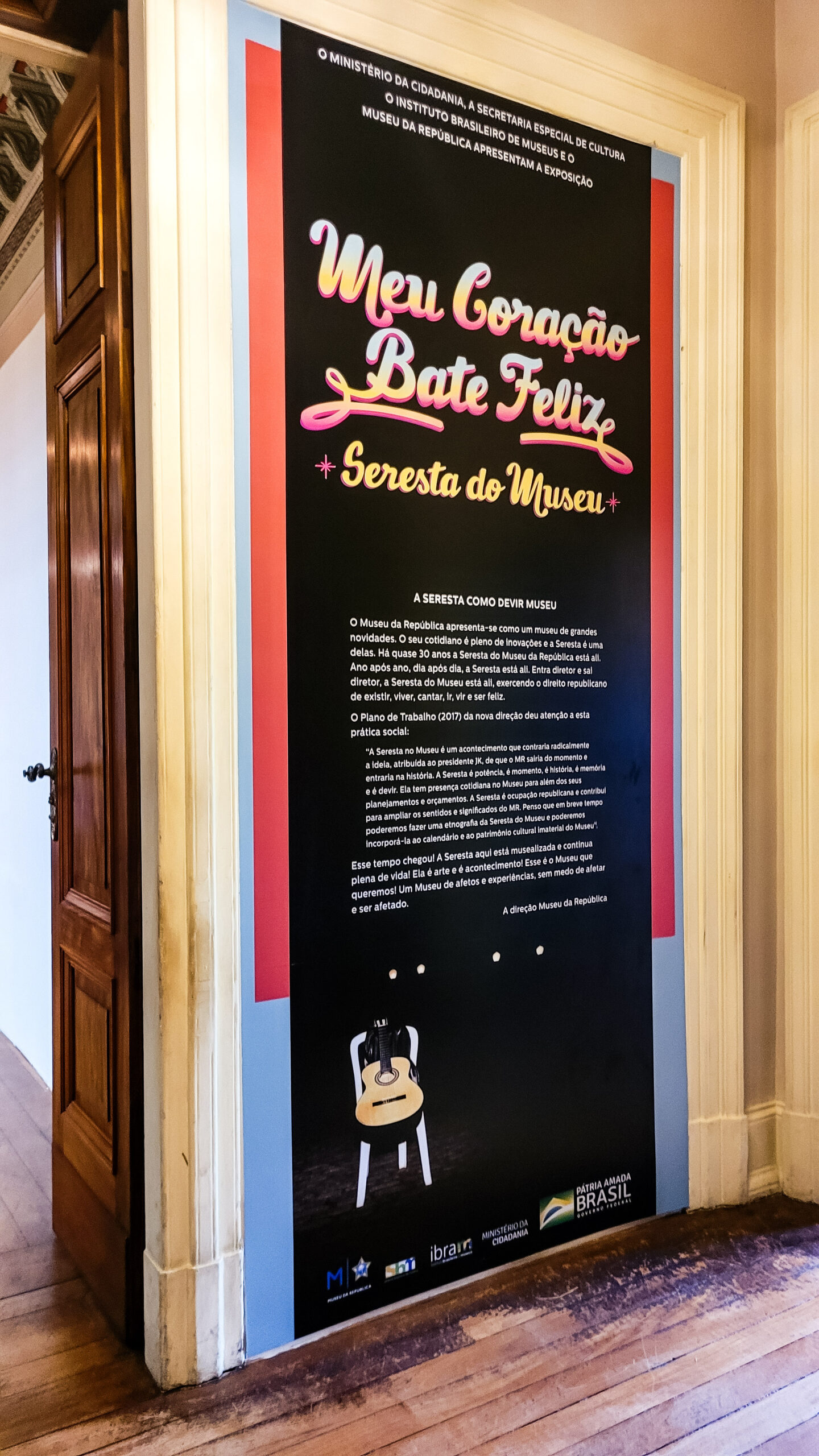 Exposição Meu Coração Bate Feliz A exposição homenageou um dos encontros musicais mais tradicionais da cidade, realizado há mais de 30 anos, no jardim do Museu da República. A seresta é uma prática cultural comunitária e de preservação de memórias.