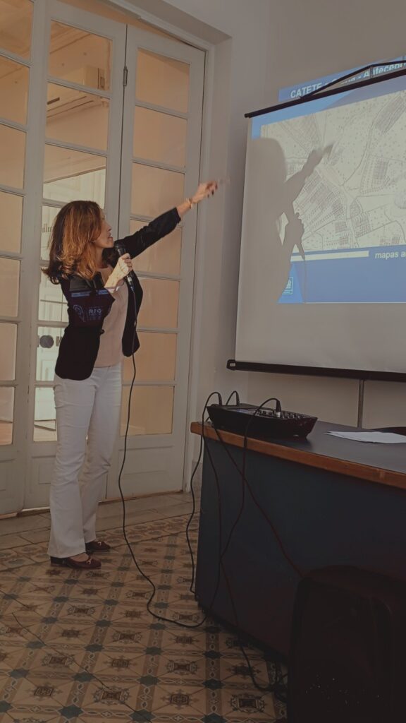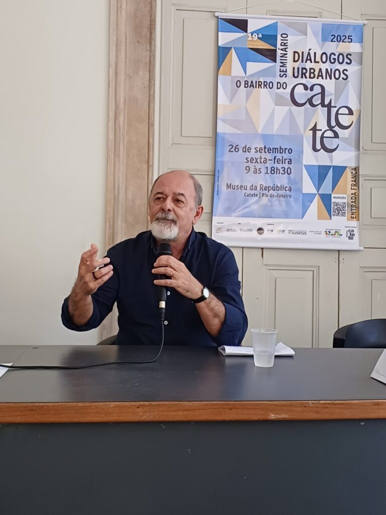 O arquiteto Márcio de Castro apresentou o projeto “RevivaRio Museu da República”, com destaque para a restauração dos gradis e chafarizes do museu, realizada sob sua coordenação em 2024. Em seguida, Mariana Strauch Arruda, gerente do 3º Escritório Técnico da Zona Sul do Instituto Rio Patrimônio da Humanidade (IRPH), e Michelle Silva Lima, coordenadora de Conservação de Patrimônio Cultural do IRPH, falaram sobre a atuação do Instituto e apresentaram estudos de caso bem-sucedidos na preservação de bens culturais no bairro. Noemia Barradas, da Comissão de Patrimônio do Instituto dos Arquitetos do Brasil – RJ, finalizou a mesa com a palestra “Do Patrimônio ao Cotidiano: o bairro do Catete”, propondo formas de integrar os bens patrimoniais ao dia a dia da população, fortalecendo seu vínculo e proteção. Ao final, ocorreu um debate com o público.