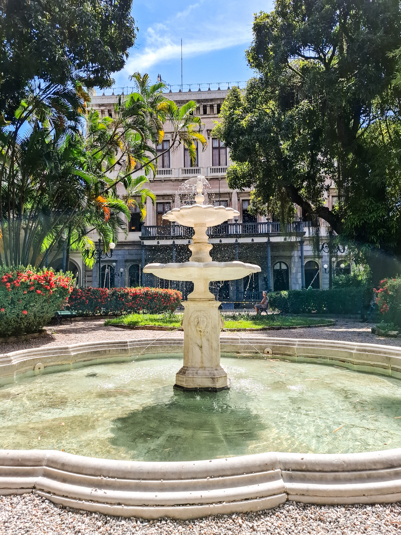 Próximo à fachada posterior do Palácio havia um grande viveiro de pássaros e em seu interior um chafariz com três bacias de água, popularmente denominado Chafariz dos Leões que foi instalado no Jardim do Palácio algum tempo depois de sua inauguração como sede da Presidência da República em 1897. Confeccionado em mármore de carrara, o chafariz era composto por três bacias superpostas que se perderam com o tempo. O projeto de restauração de 2024, com base em documentos históricos, reconstruiu em concreto armado as bacias perdidas.