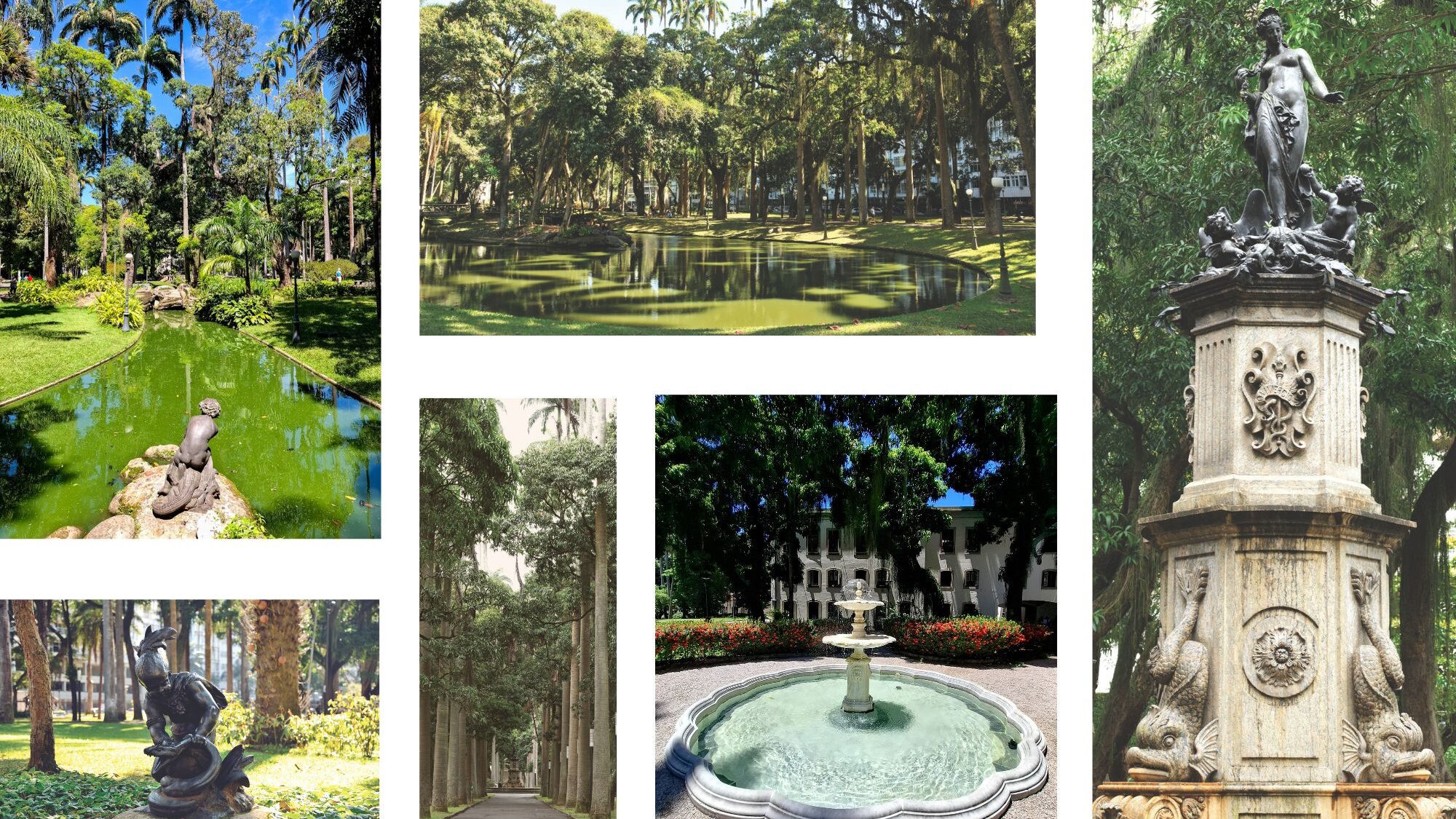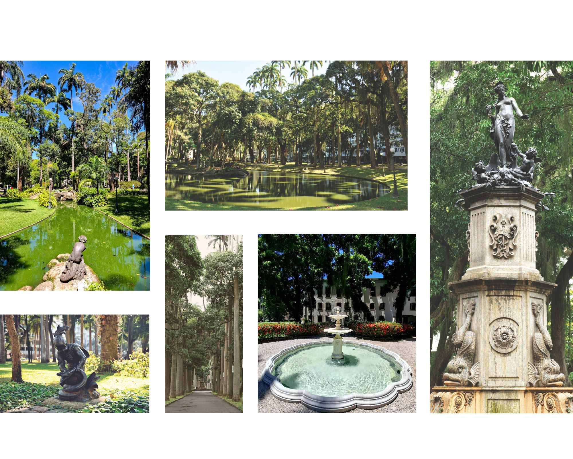Espalhadas pelo Jardim, cinco obras de Mathurin Moreau, oriundas da Fundição do Val d’Osne, na região de Champagne, na França, são parte do acervo que faz do Rio de Janeiro a maior cidade fora da França com peças produzidas nessa fundição, sendo Moreau, seu maior representante.